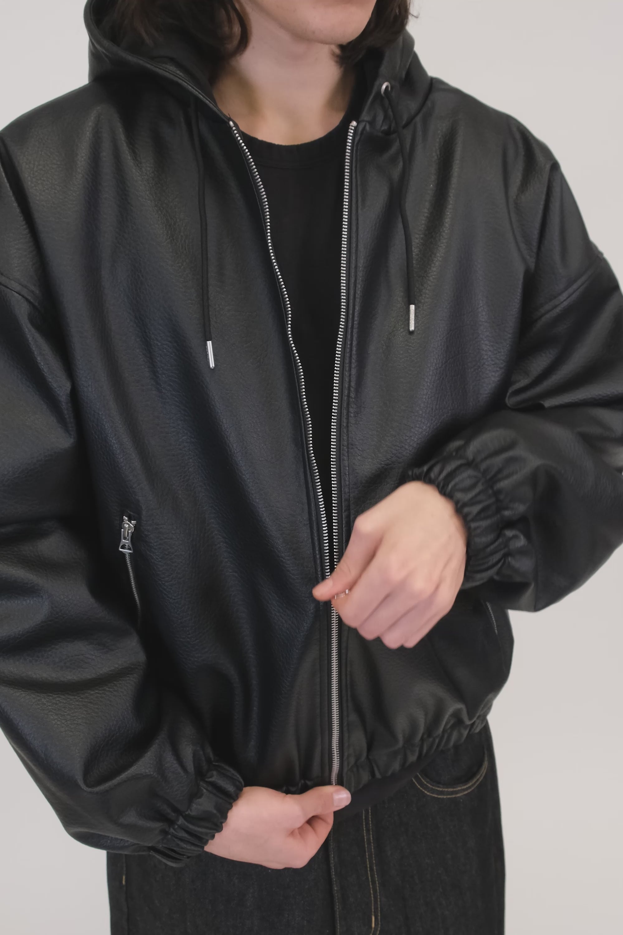 Notre blouson Shelter Jacket Nifty est un blouson en faux cuir à coupe boxy, avec une broderie à côté de la poche zippée.